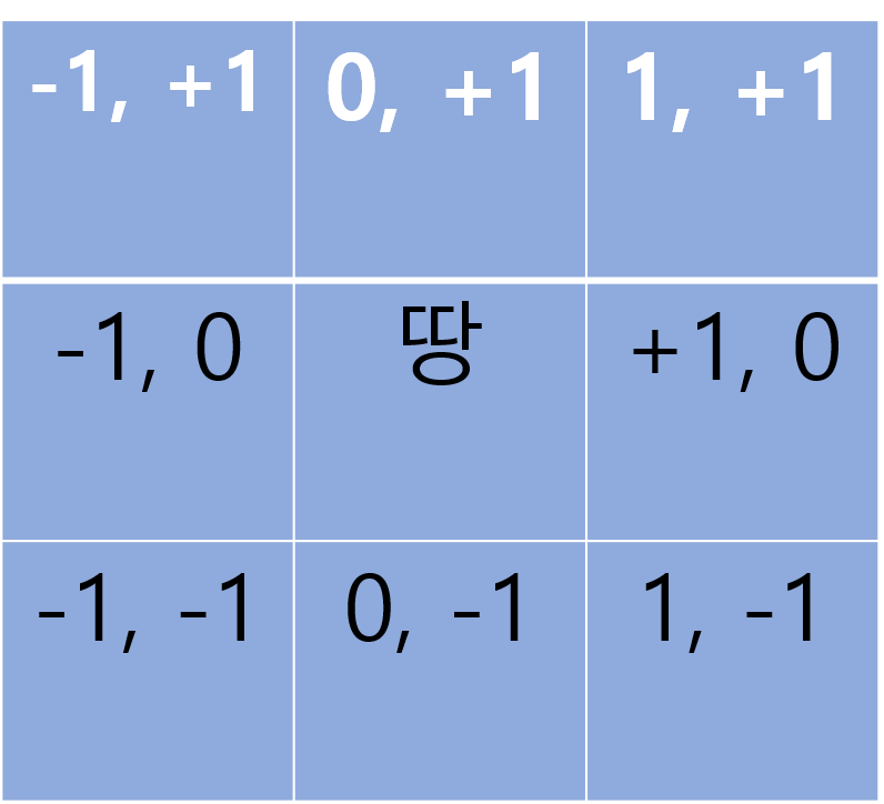 //내가 있는 위치에서 총 여덟 방향으로 이동한다.